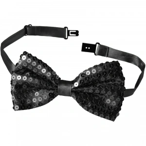 Gece Işıltısı Siyah Payetli Pullu Papyon 7x2 Cm