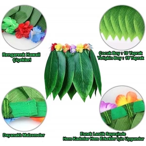 Tropikal Esintili Hawaii Yapraklı Parti Eteği Çocuk Boy