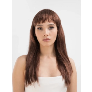 Kahve Renk Uzun Düz Parti Peruğu - Uzun Kahverengi Peruk