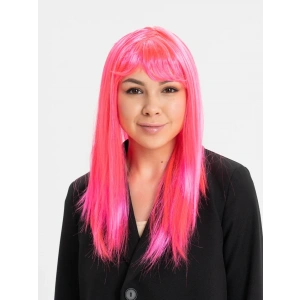 Şeker Pembesi Koyu Pembe Renk Uzun Düz Parti Peruğu