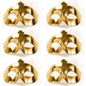 Altın Metalize Renk Düz Balo Parti Maskesi 6 Adet