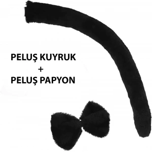 Peluş Siyah Renk Kuyruk Ve Papyon Yetişkin Çocuk Uyumlu