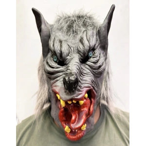 Kafaya Tam Geçmeli Lateks Dişli Ağzı Açık Kurt Maskesi