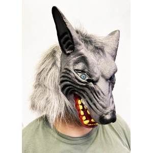Kafaya Tam Geçmeli Lateks Mavi Gözlü Dişli Ağzı Açık Kurt Maskesi