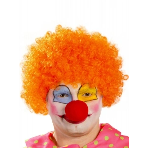Turuncu Renk Kıvırcık Afro Bonus Peruk Takma Saç Ve Kırmızı Burun Seti