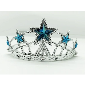 Mavi Yıldız Taşlı Plastik Kraliçe Prenses Elsa Tacı Çocuk Boy