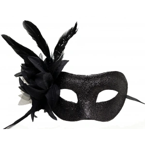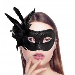 Siyah Renk Metalize Sim Görünümlü Parlak Tüylü Parti Maskesi 22x19 Cm