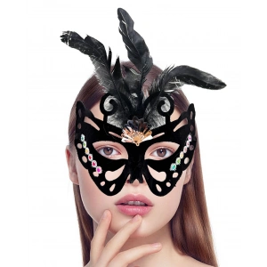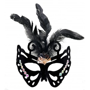 Siyah Renk Siyah Süet Kaplama Tüylü Kelebek Figür Parti Maskesi 24x18 Cm