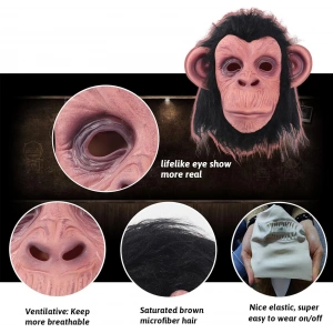 Siyah Saçlı Kafaya Tam Geçmeli Lateks Şempanze Maskesi - Lateks Maymun Orangutan Goril Maske Et Maske