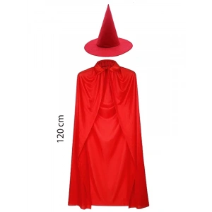 Yetişkin Boy 120 Cm Kırmızı Yakalı Pelerin Ve Kırmızı Cadı Şapkası