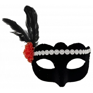 Siyah Renk Süet Kaplama Gümüş Dantelli Kırmızı Gül Tasarımlı Parti Maskesi 18x20 Cm