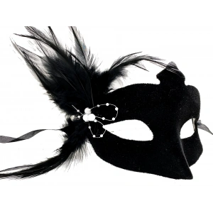 Siyah Renk Yandan Tüylü Süet Kaplama Beyaz İncili Parti Maskesi 18x15 Cm
