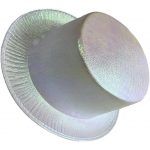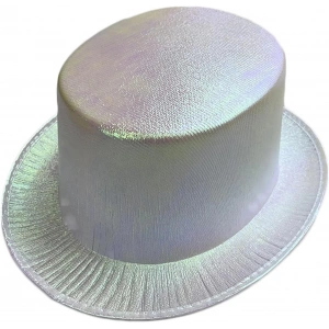 Beyaz Renk Işıltılı Hologram Kumaş Kaplama Fötr Silindir Şapka Yetişkin Boy
