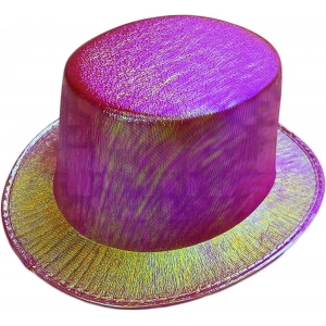 Fuşya Renk Işıltılı Hologram Kumaş Kaplama Fötr Silindir Şapka Yetişkin Boy