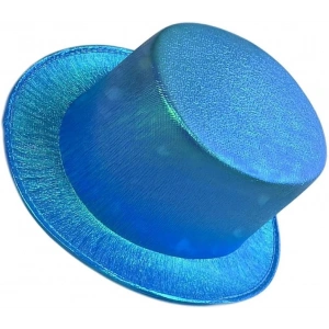 Mavi Renk Işıltılı Hologram Kumaş Kaplama Fötr Silindir Şapka Yetişkin Boy