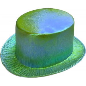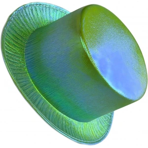 Yeşil Renk Işıltılı Hologram Kumaş Kaplama Fötr Silindir Şapka Yetişkin Boy