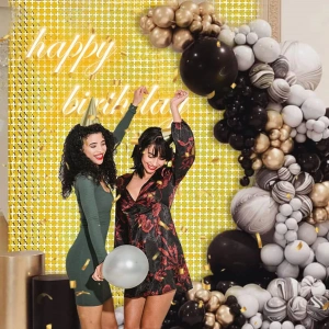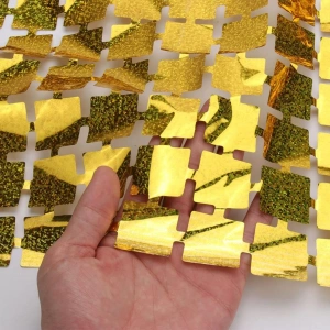 Ekstra Metalize Altın Renk Disko Dikdörtgen Kesim Kapı Perdesi Dekorasyon 1x2 Metre