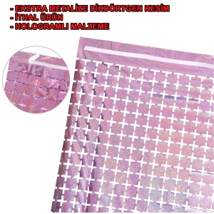 Ekstra Metalize Rose Gold Renk Disko Dikdörtgen Kesim Kapı Perdesi Dekorasyon 1x2 Metre