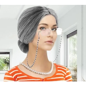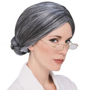 Gri Renk Yaşlı Peruğu Takma Saç Büyükanne Peruğu Yetişkin Çocuk Uyumlu