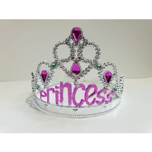 Gümüş Renk Prenses Yazılı Parti Tacı 60 Cm