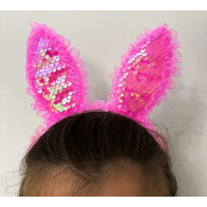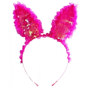 Kenarları Dantelli Fuşya Pullu Payetli Led Işıklı Tavşan Kulak Taç 23x19 Cm