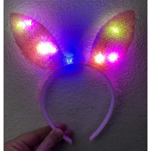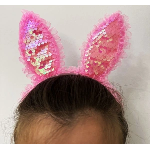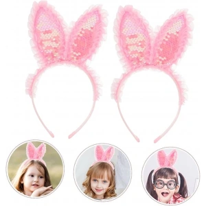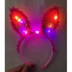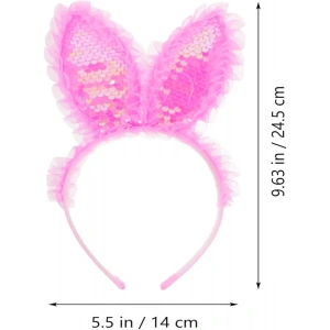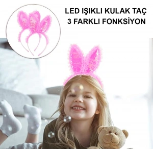 Kenarları Dantelli Pembe Pullu Payetli Led Işıklı Tavşan Kulak Taç 23x19 Cm