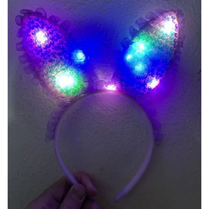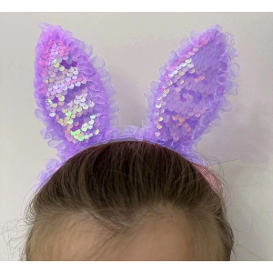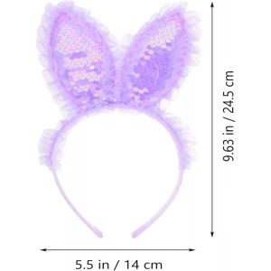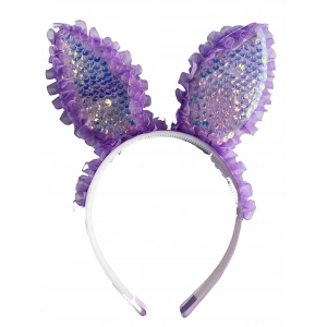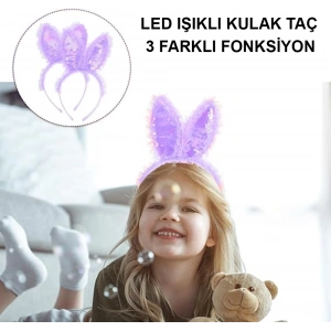 Kenarları Dantelli Mor Pullu Payetli Led Işıklı Tavşan Kulak Taç 23x19 Cm