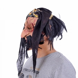 Lateks Dişli Korku Maskesi Saçlı Yarım Surat