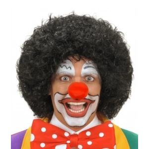 Siyah Renk Kıvırcık Afro Bonus Peruk Saç Ve Kırmızı Sünger Burun Seti
