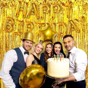 Altın Gold Renk Ekstra Metalize Parlak Saçaklı Arka Fon Perde İthal A Kalite 1x2 Metre