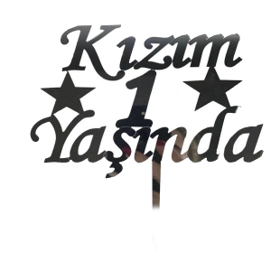 Kızım 1 Yaşında İlk Yaş Doğum Günü Partisi Pleksi Pasta Süsü Gümüş Renk