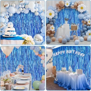 Mavi Renk Ekstra Metalize Parlak Saçaklı Arka Fon Perde İthal A Kalite 1x2 Metre