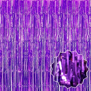 Mor Renk Ekstra Metalize Parlak Saçaklı Arka Fon Perde İthal A Kalite 1x2 Metre