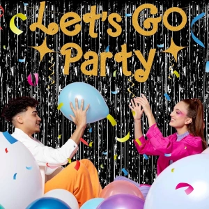 Siyah Renk Ekstra Metalize Parlak Saçaklı Arka Fon Perde İthal A Kalite 1x2 Metre