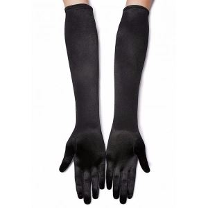 Siyah Renk Likralı Dirseğe Kadar Uzun Kumaş Eldiven 40 Cm