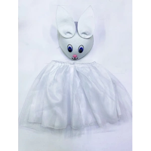 Tavşan Kostümü Beyaz - 23 Nisan Tavşan Şapka Ve Tütü Etek Seti 2 Parça