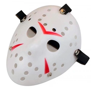 Beyaz Renk Kırmızı Çizgili Tam Yüz Hokey Jason Maskesi Hannibal Maskesi