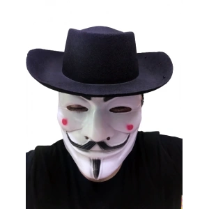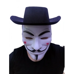 Siyah Renkli Delikli Çocuk Boy Vendetta Şapkası Ve Vendetta Maskesi
