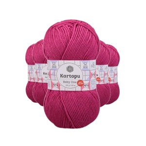 5 Adet Baby One Tüylenmeyen El Örgü İpi Yünü Fuşya K245
