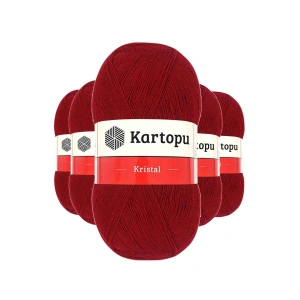 5 Adet Kristal Çift Katlı El Örgü Lif İpi Koyu Kırmızı K125