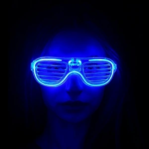 Mavi Led Işıklı Parti Gözlüğü - Neon Glow Şerit Gözlük 3 Modlu