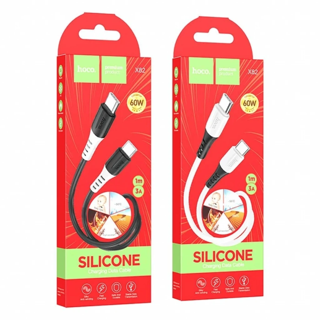 HOCO X82 60W Type-C to Type-C Hızlı Şarj Kablosu Silikon Data Kablosu her zaman yanınızda.