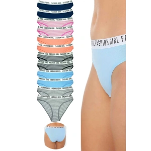 12 Adet Beli Renkli Lastik Pamuklu Kadın Slip Tutku Külot