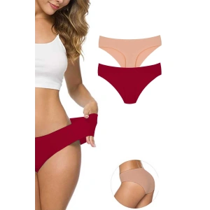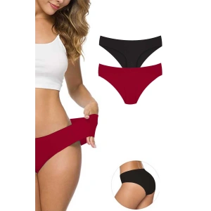 2 Adet Kadın Dikişsiz Lazer Kesim Esnek İz yapmayan Külot Bordo