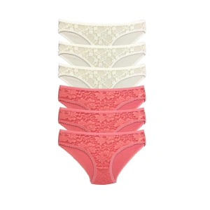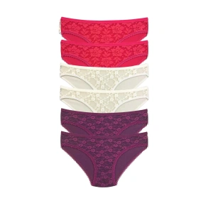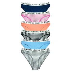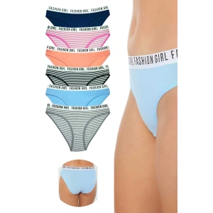 6 Adet Beli Renkli Lastik Pamuklu Kadın Slip Tutku Külot