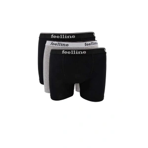 3 adet Feelline Siyah ve Gri Pamuklu Doğal Likralı Erkek Boxer