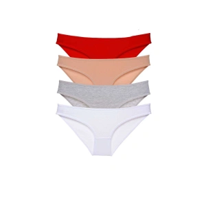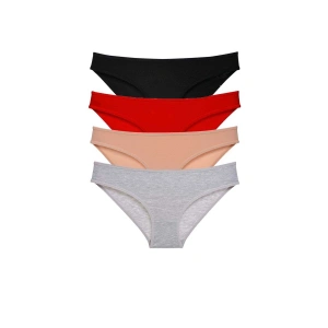 4 adet Süper Eko Set Likralı Kadın Slip Külot Siyah Kırmızı Ten Gri