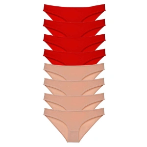 8 adet Süper Eko Set Likralı Kadın Slip Külot Kırmızı Beyaz