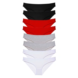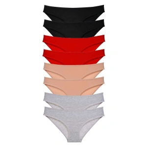 8 adet Süper Eko Set Likralı Kadın Slip Külot Siyah Kırmızı Ten Gri