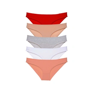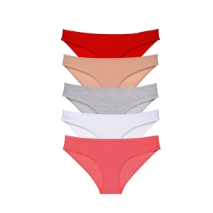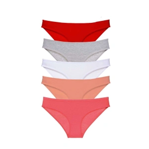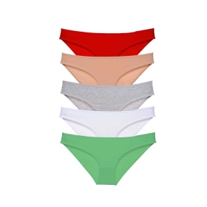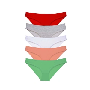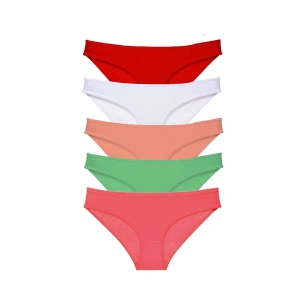 5 adet Süper Eko Set Likralı Kadın Slip Külot Kırmızı Beyaz Pudra Yeşil Fuşya